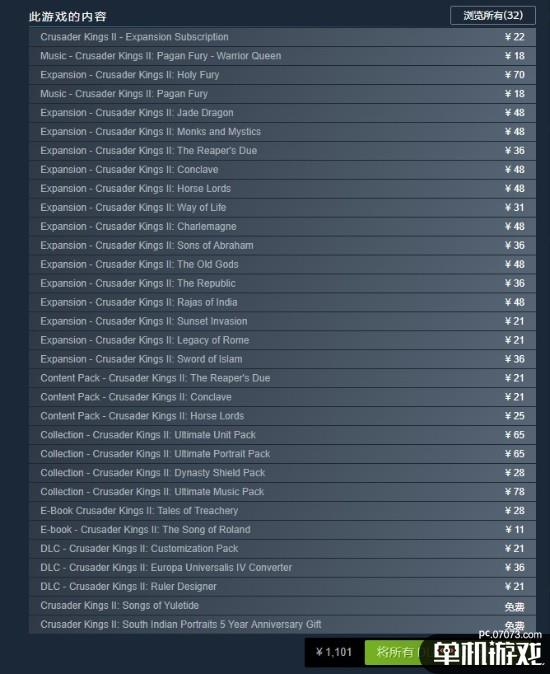 如果你想买下全部的《十字军之王2》DLC,可能要花上1000多元
