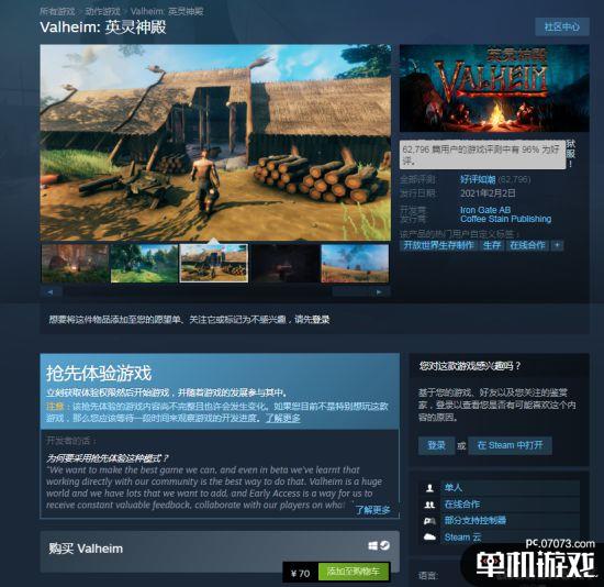 《Valheim:英灵神殿》是一款维京题材多人生存游戏,包含建造、战斗、探索等元素,支持最多10人共同游玩。目前本游戏在Steam进行EA测试中,售价70元,感兴趣的玩家可以去了解一下。