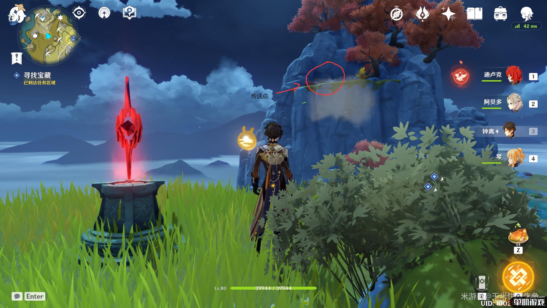 ①按照惯例,咱先去地图上左边的藏宝地,传送到奥藏山顶,然后直飞即可