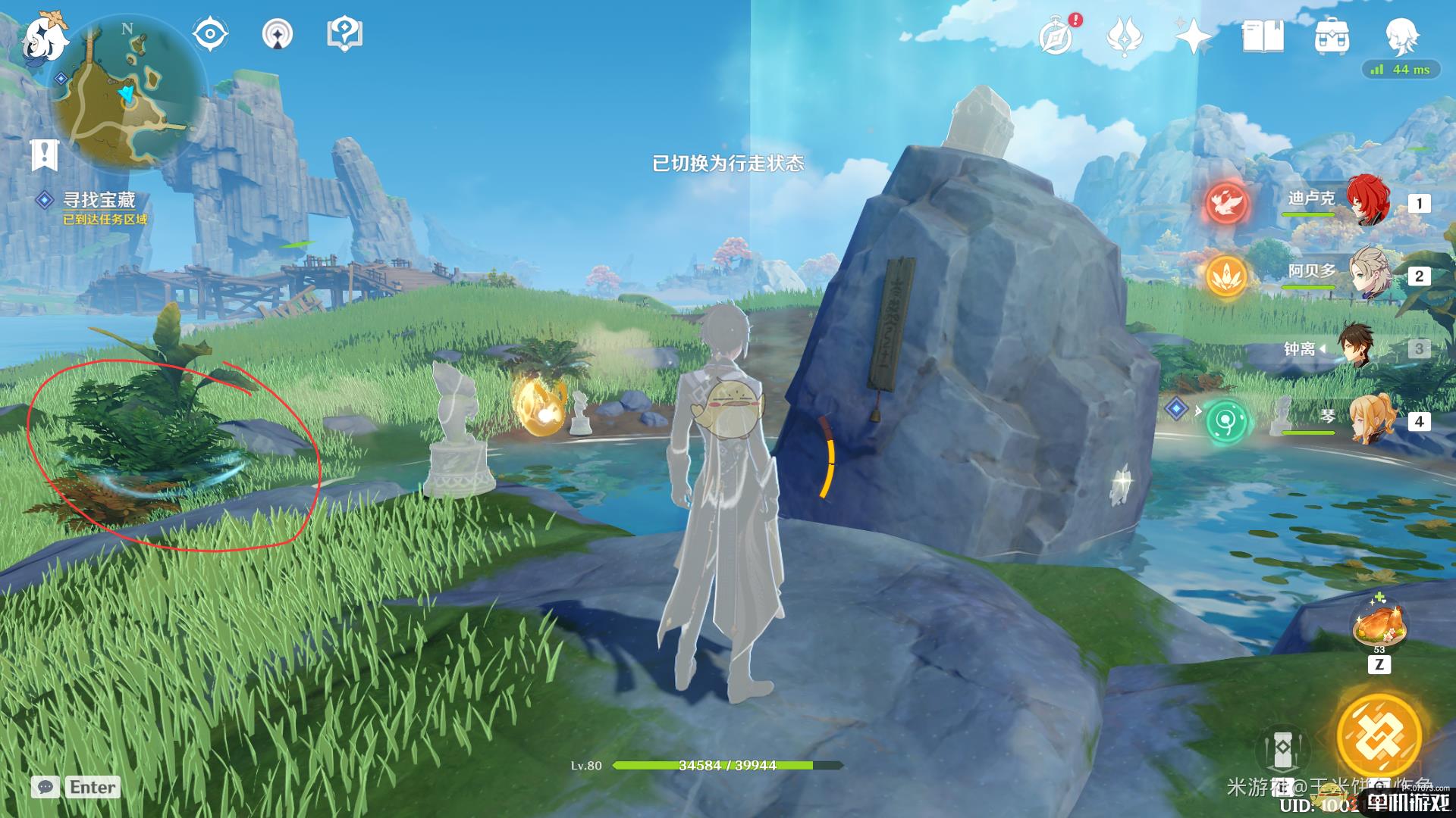 ②然后我们去中间那个宝藏点,先甩个小技能完成任务,然后找宝藏