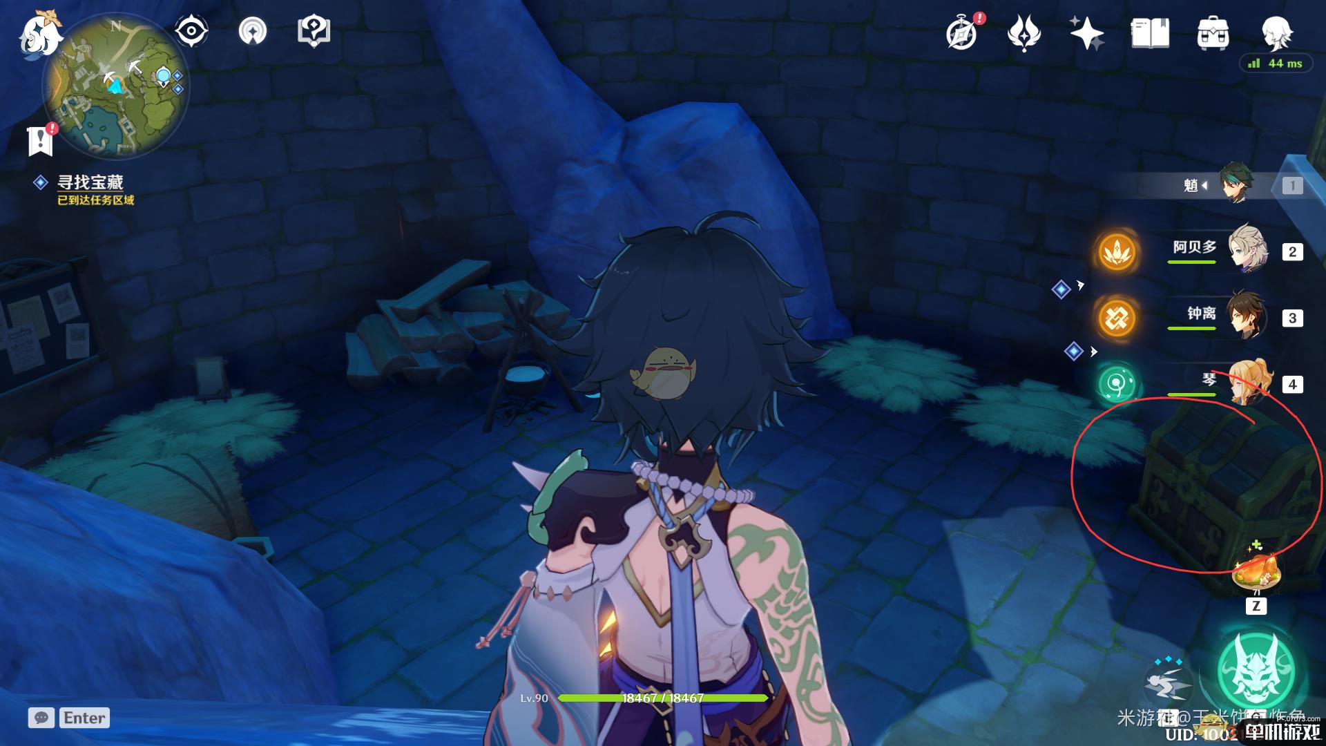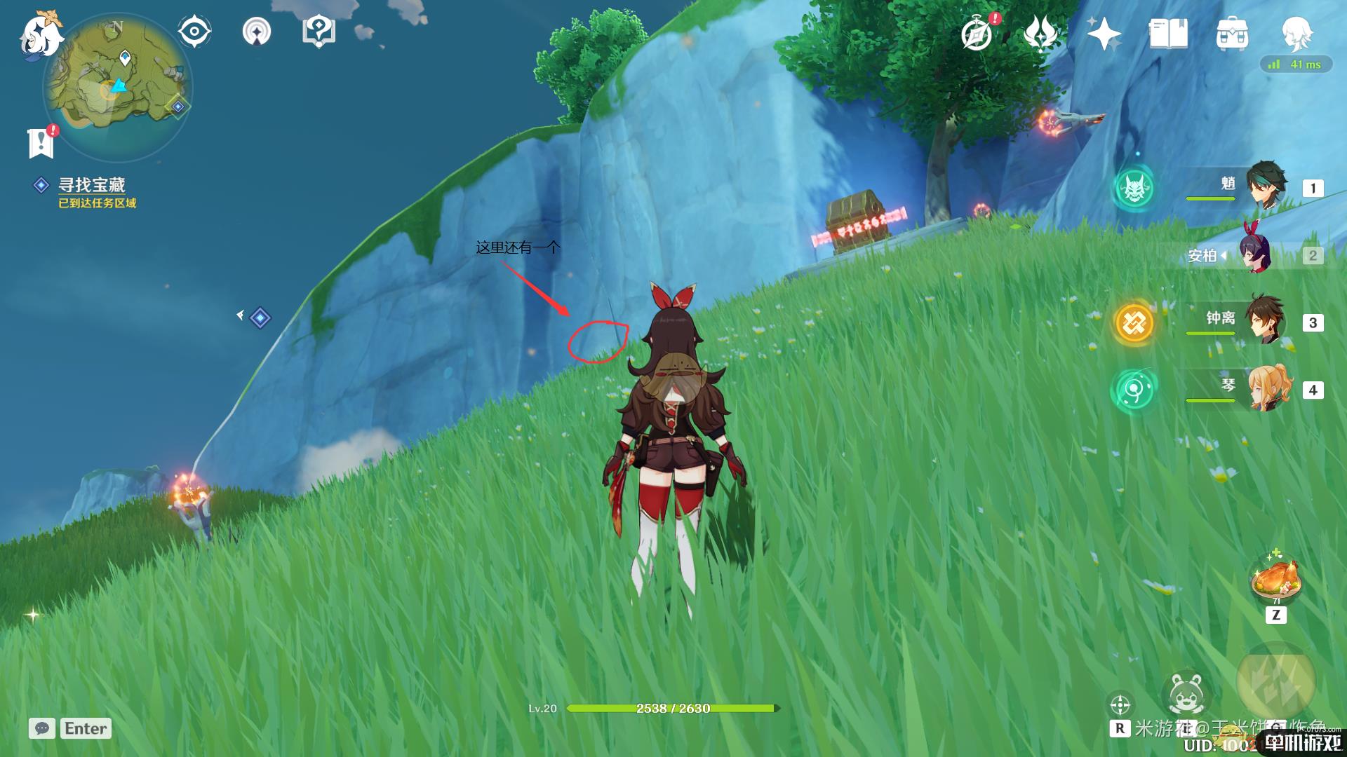 ①来到最左边的藏宝地,直飞即可,丢几个小技能解决秋秋人,这里还有好多禽肉(提米:!),宝箱在红圈里