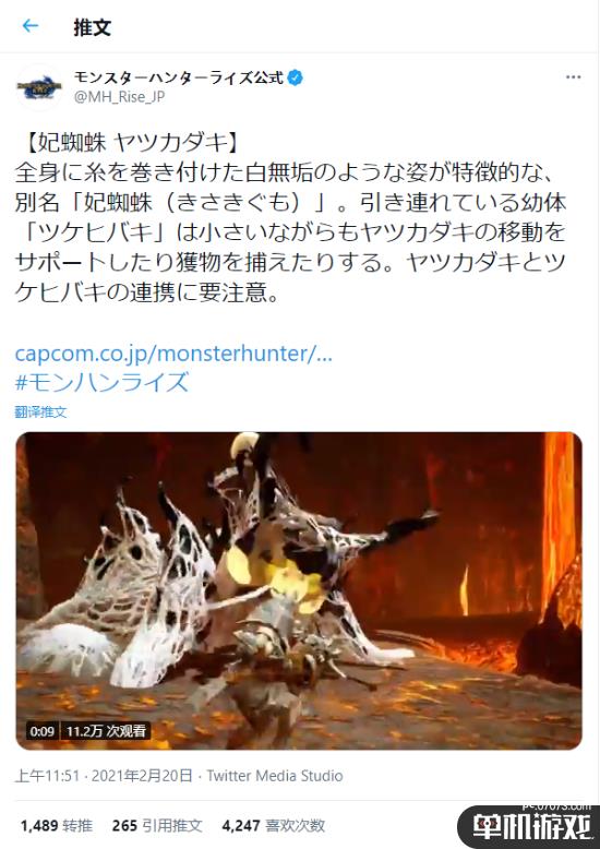 《怪物猎人:崛起》官推公布新的演示短片,本次展示了妃蜘蛛的一些攻击移动模式。