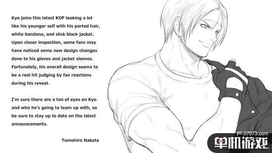 SNK官方推特发推,分享了SNK开发人员对《拳皇15》角色草薙京的看法。
