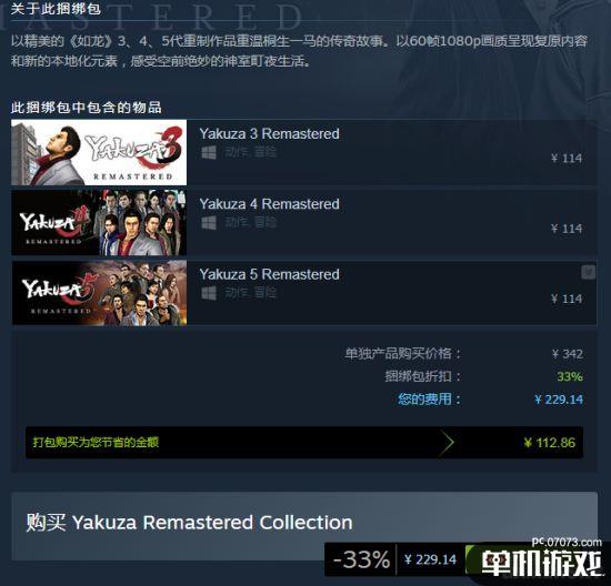 《如龙3:重制版》、《如龙4:重制版》、《如龙5:重制版》已登陆登陆Steam平台,玩家可以在60帧、1080p的条件下畅游神室町!