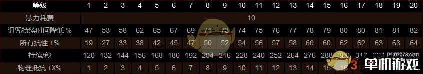 再来看能量消解,提供了大量抗性与诅咒持续时间降低程度,对于大量远程元素怪物与闪电强化怪物是极有效的(开荒无毁灭与火炬,缺抗),美中不足的是低等级时物免微乎其微。