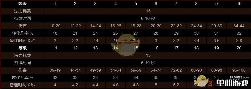 大致效果可参考迷乱诅咒,但可以看到低等级时转化几率在25左右,且持续时间较短(6-10秒),与魔影斗篷相比,如下图