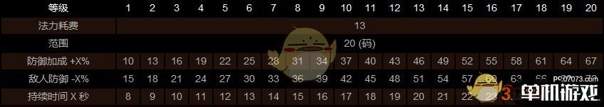 持续时间12秒,且可提升,在目盲效果之外还有减防御与防御加成,大范围(20码),比较省事。