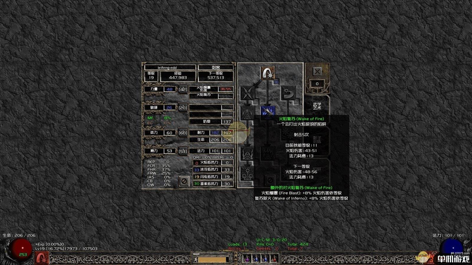 到达十二级后即可点出火焰复苏,aoe伤害极高,附图如下