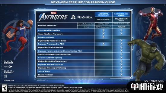 根据VGC介绍,SE发布的官方表格显示,PS5版本《漫威复联》将拥有两种画面模式:高性能模式(以60fps和棋盘式渲染4K分辨率运行)和4K模式(原生4K,但帧率可能会降低)。