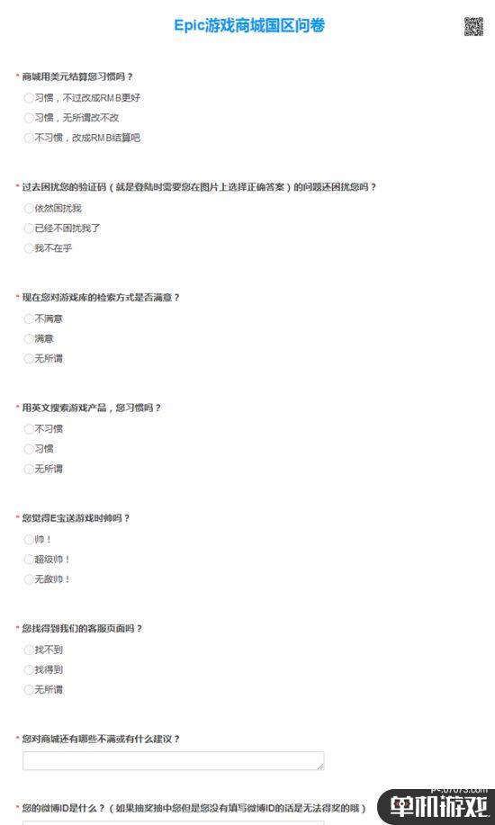 Epic方面表示希望大家直言,帮助改进产品,将从转发相关微博并参与答题的玩家中抽出三位,获得商城任一已上线游戏一款:“请大家在问卷最后留下自己的微博ID。