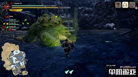 除了奇怪龙以外,演示中还能在冰封群岛里看到成群结队的小眠狗龙和两栖种新怪物河童蛙。小眠狗龙是一种会以特殊体液使猎物陷入昏睡再将之解决的狡猾鸟龙,特征为能够融入寒冷地区景色的浅蓝色皮肤,以及头上高高隆起的角。