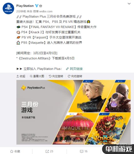 优惠期由2021年3月2日至4月5日,此外提供给PlayStation Plus会员的《最终幻想7:重制版》不适用于PS5数位版升级。