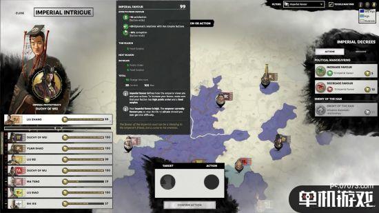 而对于汉帝国而言,玩家现在可以使用点数来削弱(或增强)其他势力对天子的影响力,这也决定了各大势力以及汉帝国对你的态度。