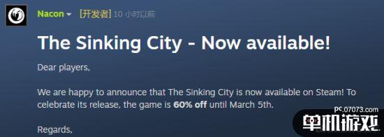 Steam商店中,玩家在评测区反映当前版本的《沉没之城》没有DLC、云存档和成就系统。今日,游戏发行商Nacon在Steam商店中发布了《沉没之城》开售的公告。