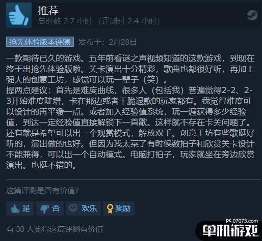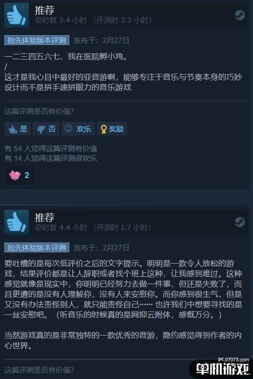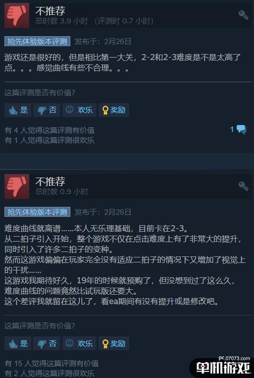 选择“不推荐”的玩家,吐槽的地方就在于《节奏医生》的难度曲线设计问题,2-2和2-3相比第一大关难度飙升,成为了劝退关卡,即便是许多给予好评的玩家也提到过这点。所以很多人希望这方面能在EA阶段修改,制作组能在正式版给出更令人满意的答卷。