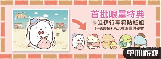 凡购买首批中文版游戏,即有机会获得角落小伙伴造型的「卡哇伊行李箱贴纸组」,一组共五张,不但可以让您的行李箱充满可爱又迷人的气息,也可以将贴纸贴于任何您喜欢的位置,让生活围绕在角落小伙伴们的可爱之中。
