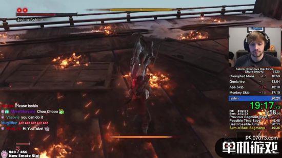 今天,由美国选手Mitchriz创下的《只狼:影逝二段》20分20秒的Any%(任意完成度)速通纪录被同为美国选手的LilAggy刷新了,新纪录快了3秒钟,仅花了20分17秒。下面一起来看看他挑战纪录的过程吧。
