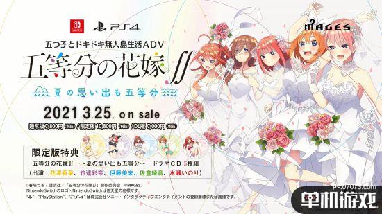 《五等分的花嫁:夏日回忆也五等分》将于3月25日正式登陆Nintendo Switch及PS4平台,标准版售价7800日元(约合人民币462.52元);限定版售价10800日元(约合人民币647.33元)。限定版特典包含了由五姐妹的超豪华声优阵容(花泽香菜、竹达彩奈、伊藤美来、佐仓绫音、水濑祈)献唱的5张主题曲CD。