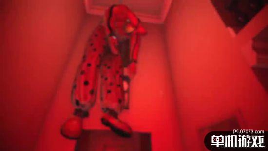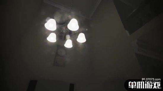从预告片中我们能看到,本作的场景也是在一栋民宅里,普通的走廊、昏暗的灯光,是我们熟悉的味道了。接着画面闪动,清冷的环境中有什么人站在楼上看着你,猩红的视野中身旁的吊灯似乎变成了吊在那里的人……