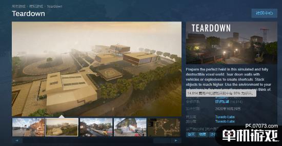 《Teardown》目前在Steam八折优惠,原价70元,现优惠价56元,本作好评率95%好评如潮,暂不支持中文。