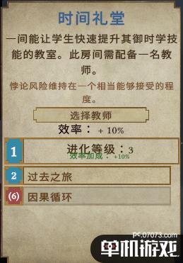 那么我们在建设的时候辅助学系就可以只建设以上相关教室,其余可以全部通过奇物学习相关技能(新手应注意,特殊学系建筑拥有相关技能,升级到教室可以点数解锁相应技能,如技能特别好可以建,如御时室有学生产出御时室牌的技能简直逆天)。