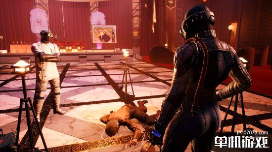 Megan:我们最开始提了很多想法。当你有一张白纸时,可能性似乎是无穷无尽的,很难缩小范围或选择一个 "让我们这样做吧!"的选项。但我想我们都被“神秘谋杀”的想法吸引,一部分原因是之前没有做过,而且思考 "我们如何制作一个具有《天外世界》风格的独特的谋杀案"也很有趣。最近《利刃出鞘》上映了,我一直都是这种类型电影的粉丝,这可能也起到了一定的影响。而且,这也能让原版游戏中的一些元素再度出场——比如里佐公司、Odeon Picture的大明星海伦、Spencer Woolrich和Burbage、Tossball运动、解锁地图上的更多星球等等。于是我们加入了这些元素,开始探索在我们游戏的世界观中,作为一个科幻侦探,会有怎样有趣的角色扮演体验。