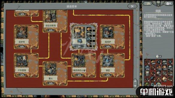 田园周围的所有空白地块全部变为花园。探险结束后,每完成一次循环获得一份口粮,数量不超过农场周围的花园地块数。你可以在花园上建造其他东西。