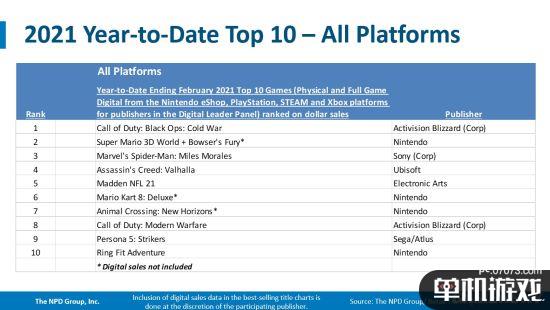 2021年总销量榜中《使命召唤:黑色行动冷战》依然稳居第一,《超级马里奥3D世界+狂怒世界》位居第二,《漫威蜘蛛侠:迈尔斯·莫拉莱斯》排在第三名。详情见下图。