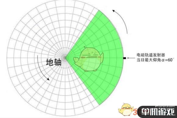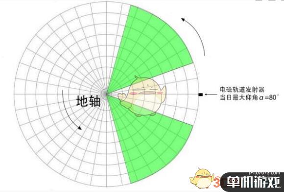 所以,电磁轨道弹射器越接近赤道,通常当日最高仰角α越高,如图1,日总发射量越好。