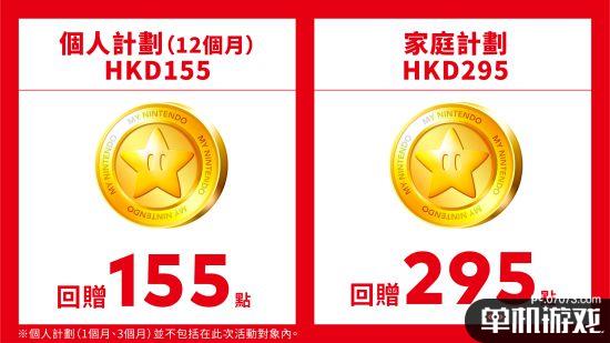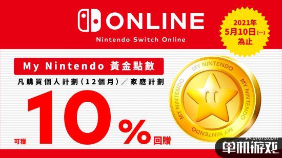 活动期间内,加入NS online个人计划(12个月)或家庭计划,便可获赠等同于购买金额10%的My Nintendo黄金点数。