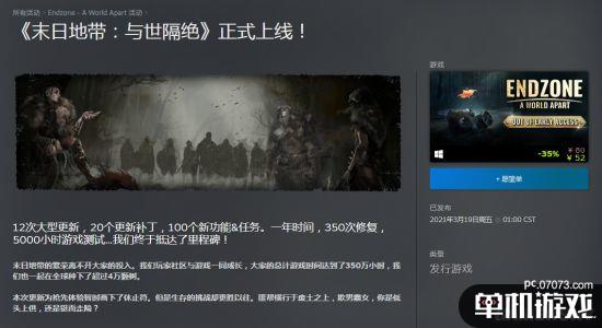 核爆末世生存题材城市建造类游戏《末日地带:与世隔绝》经过一年时间,350次修复,5000小时游戏测试,终于在今天结束了抢先体验,正式上线Steam平台,优惠售价52元,支持中文。
