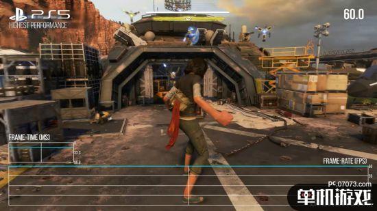 PS5性能模式与画质模式同样有着极大的差距,这些差距更多体现在游戏细节上:天空母舰升空时地面上的人影和建筑、浩克砸地板时产生的碎石粒子等等;这两种次世代模式还能够非常完美的保持30帧(画质)/60帧(性能),并且大多数时候不会产生掉帧现象,该现象在战场非常混乱、技能、弹道漫天飞的时候会大量出现,但波动范围仅在1-4帧左右。