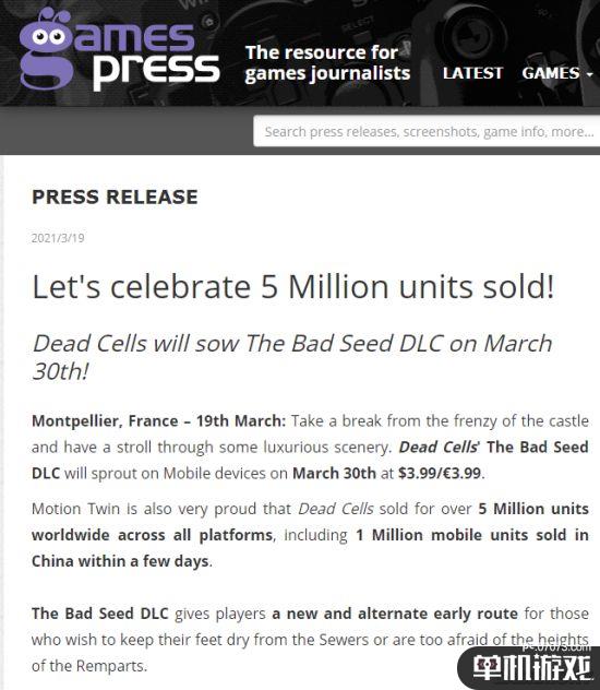 《死亡细胞》开发商Motion Twin今天发布新闻稿,正式宣布:《死亡细胞》全平台销量达500万份。