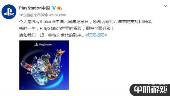 PlayStation中国官微发文感谢6年以来玩家们的支持和陪伴,并预告,在新的一年,PlayStation世界的冒险即将全面升级:“请和我们一起,等待次世代的到来。”