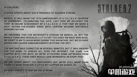 《潜行者2》开发者今天早些时候发推,确认会出席微软26日的发布会。