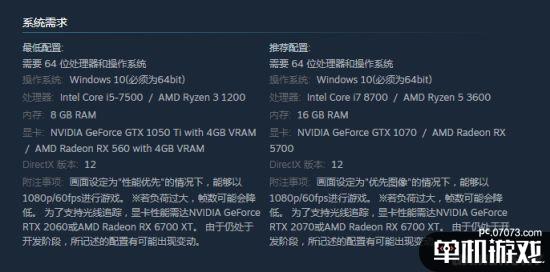 《生化危机8》Steam页面公布了PC版配置需求,最低要Core i5-7500/Ryzen 3 1200+GTX 1050 Ti/Radeon RX 560(4G),推荐配置则是Core i7-8700/Ryzen 5 3600+GTX1070/RX 5700。