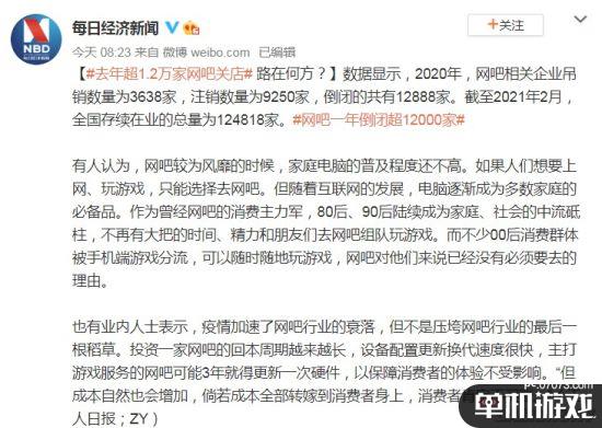 据每日经济新闻报道,在2020年有超过1.2万家网吧倒闭。根据业内人士分析,网吧倒闭数量如此之大的原因一方面是家庭电脑、手机的普及,许多玩家可以足不出户玩电脑,随时随地玩手机。另一方面是受到疫情、设备更新换代速度影响,网吧经营成本增加,导致大量网吧倒闭。