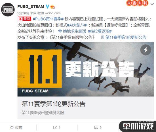 《绝地求生》官博今日公布了第11赛季第1轮更新公告,新内容目前已上线测试服,包括火山地图帕拉莫回归、新模式AI大乱斗、新道具“紧急呼救器”、新界面以及新皮肤等等内容,让我们一起来看一看。