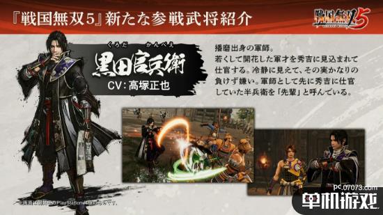 《战国无双5》今日正式公布了4名全新参战角色:黑田官兵卫、竹中半兵卫、中村一氏、濑名、山中鹿介。其中中村一氏、濑名、山中鹿介都是首次在《战国无双》系列中登场。