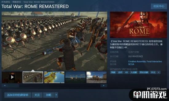 今日《全面战争》官方公布了《罗马:全面战争重制版(Total War: ROME REMASTERED)》游戏,本作由Creative Assembly和Feral Interactive打造,本作将在今年4月29日登陆PC平台,售价148元。游戏支持简体中文。