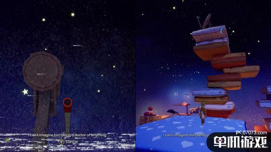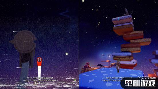 传送过后,玩家将看到一座巨大的枕头塔。玩家需要跳跃至最高处的顶峰上。当玩家登上最高峰时,会遇到一个卫星设备,与之互动并转动调频旋钮、将卫星设备面向南方即可接收到这则著名演说的广播。