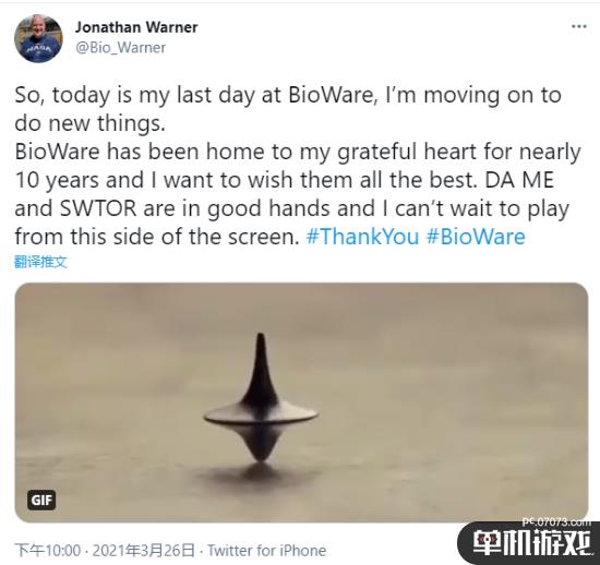 Jonathan Warner昨日在推文中表示,自己已经在BioWare供职近十年,而在离职之际他也希望给BioWare送上最美好的祝愿。另外Warner也提到:《龙腾世纪》、《质量效应》以及《星球大战:旧共和国武士》现在都是在可靠的开发者手中,自己已经等不及从屏幕的这一端来玩上一玩了。