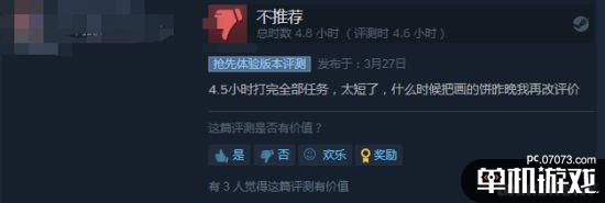 在相对较为消极的评价方面,玩家表示:“游戏战斗难度高”、“时长过短”、“游戏内容仍不完善”等等。总而言之,这部马头社新作在EA阶段的质量让玩家认同,不过总体流程较短,期待游戏后续更新。