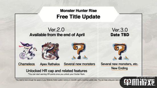《怪物猎人:崛起》游戏更新Ver.2.0.0预计将在4月底发布,追加“霞龙”、“霸主雄火龙”等多只怪物、猎人等级和相关功能。《怪物猎人:崛起》现已与3月26日(昨日)发售,登陆Switch平台。IGN评分8分,M站均分86分。感兴趣的玩家不要错过。