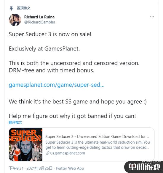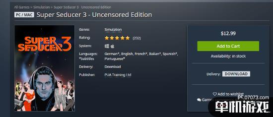 《超级情圣3》现已在Gamesplanet游戏商店出售,售价12.99美元,并提供未经审查和已审查(给主播用的)两个游戏版本。