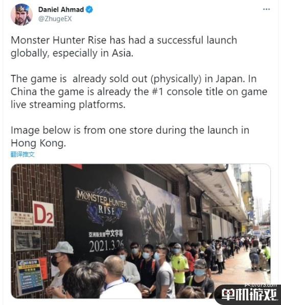 知名推主@ZhugeEX今天通过推特发文发表,《怪物猎人:崛起》在全球范围内的发售情况相当成功,亚洲地区尤为火爆。