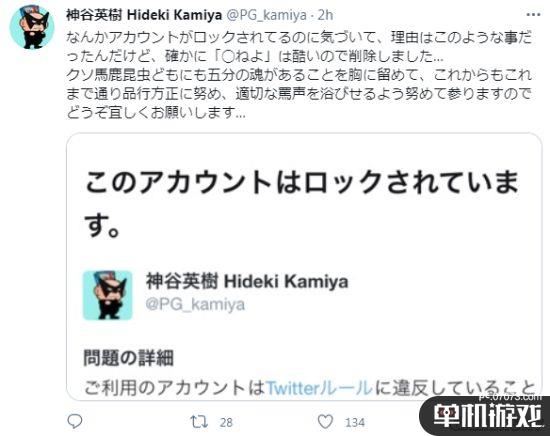 有着“拉黑之王”外号的白金工作室的游戏制作人神谷英树由于经常在推特上喷人而让玩家对他印象深刻。今日他在推特上表示,自己的账号因2016年发布的过激言论推文被封禁(锁定)了。他表示:“我要牢记,即使是愚蠢的昆虫也有五分灵魂,今后也会一如既往的努力端正品行,努力适当地喷人,请多多关照…”