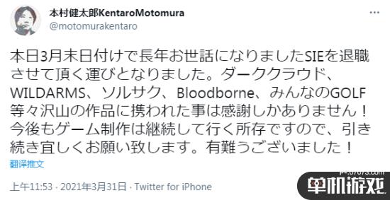 今日,SIE日本高级游戏制作人本村健太郎宣布离职。他在任期期间,曾参与制作包括:《大众高尔夫》、《血源》、《灵魂献祭》、《荒野兵器》、《白骑士物语》等作品。