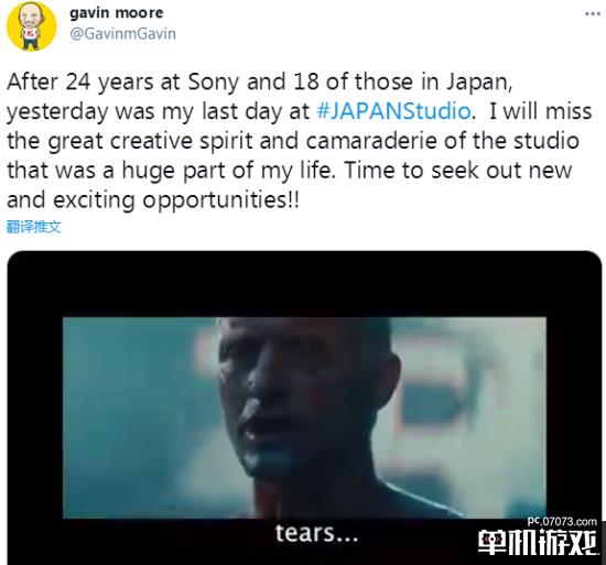 Gavin Moore为他的离职推文配上了《银翼杀手》的经典台词——All those moments will be lost in time like teas in rain。