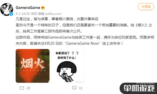 发行商GameraGame今日宣布,《烟火》开发商拾英工作室即将公布一部全新作品,该作品将于4月20日举办的“GameraGame Now”线上发布会上正式公布。